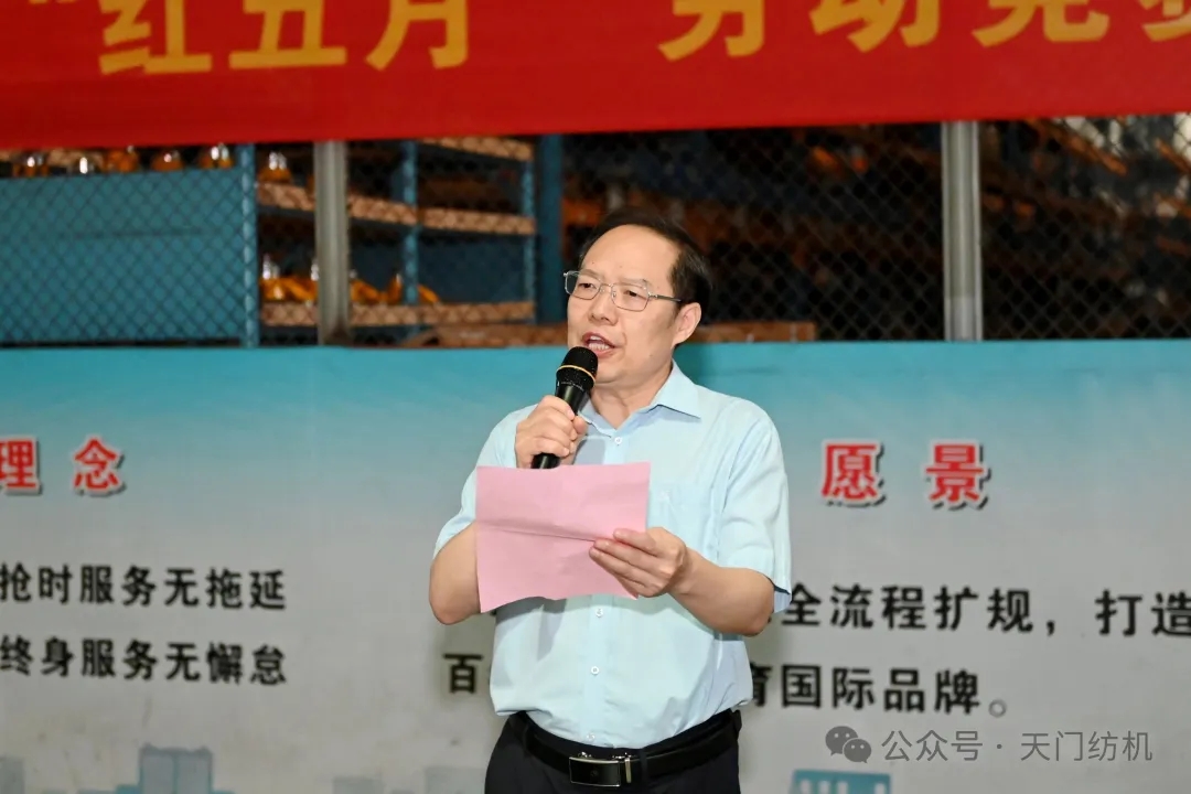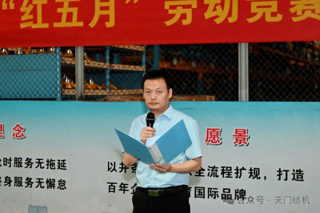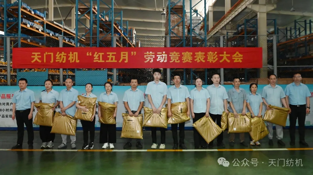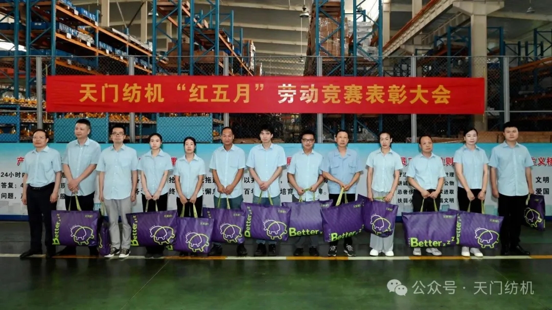 晨光微熹,映照勞動者的身影。2025年6月27日早上8:00,天門紡機(jī)全體員工齊聚總裝配區(qū),舉行“紅五月”勞動競賽表彰大會,禮贊拼搏者,致敬奮斗人!